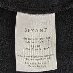 Women’s Sézane crewneck sweatshirt in a soft charcoal gray marbled wash with two embroidered red heart details on the front. Crafted from 100% cotton fleece with ribbed neckline, cuffs, and hem for a comfortable everyday fit. Made in Portugal using organic cotton fibers. Great used condition overall. There are some small dark marks on the front, but thanks to the marbled gray color, they don't stand out the way they would on a solid color fabric (see photos). Ships fast from a smoke-free home.
