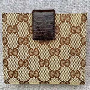 Gucci GG Rare Neutral Canvas Monogram Web Canvas Compact Wallet