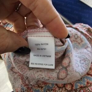 Sara Michelle 2X Pink Blue Tan Paisley Print V Neck Button Front Tunic Top