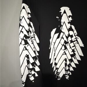 • Design: Abstract "shattered" chevron graphic on chest and both sleeves