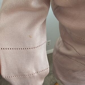 Dana Buchman 100% silk lightweight cardigan and tank set. The cardigan is a small and fits like a size 6. The tank is a medium and fits well underneath. Stretchy. Mannequin is a size 4 for reference. Baby pink.