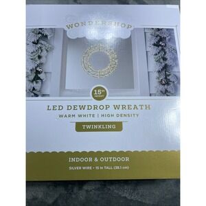 Wondershop Christmas LED Dewdrop Wreath Twinkling Warm White In/Out 15in NEW
