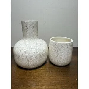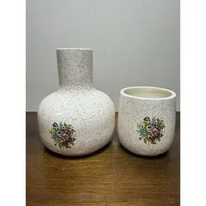 Vintage Bedside Tumble Up Water Decanter Floral Cream With Brown Speckled