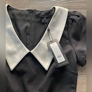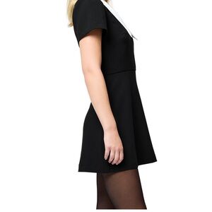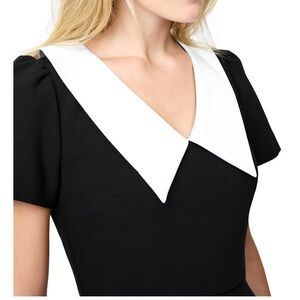 Chic mini dress with a bold white collar. Perfect for stylish outings.