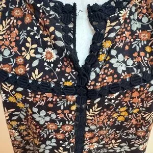 Lucky Brand Floral Sleeveless Blouse - navy and Brown