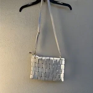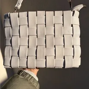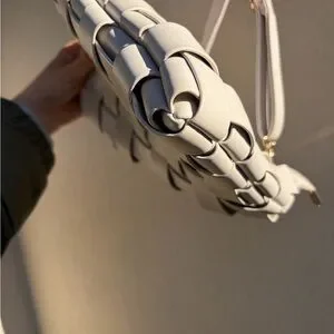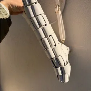 This elegant white woven shoulder bag is perfect for any occasion. Its sleek design and versatile color make it a must-have accessory.