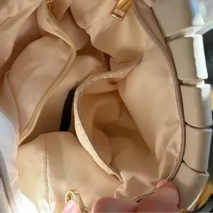 It has a strong leather smell when you put your nose into the bag a little bit like cigarette smell but it’s the material that smells like it and only noticeable when you put your nose into it