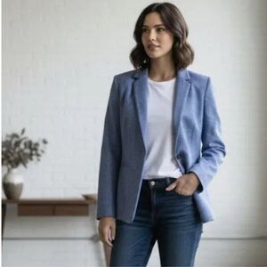 Timeless blue blazer with a single-button closure. Ideal for professional and casual settings.