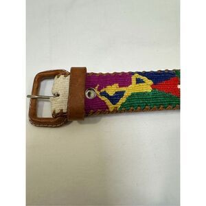 Mayan design inspired leather belt made in Guatemala size Small. #M-1289