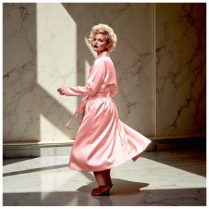 • Style: Satin trench-style coat / coat-dress