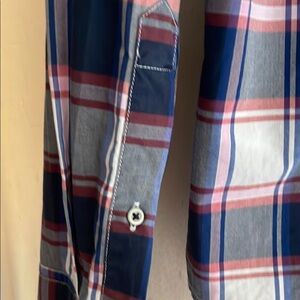 This Banana Republic shirt showcases a vibrant blue and red plaid pattern, perfect for a relaxed, casual look. Crafted from soft, comfortable fabric, it features a classic button-down design ideal for everyday wear.
