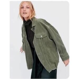 Item: Zara Corduroy Oversized Button Front Shacket Jacket Women's Green Cotton