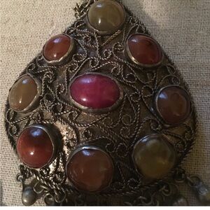 Very unusual ethnic inspired possibly India necklace one side is jewel the other side has the cool figure etched into it please note due to screen, resolution, lighting, and the device you’re viewing it on color may vary