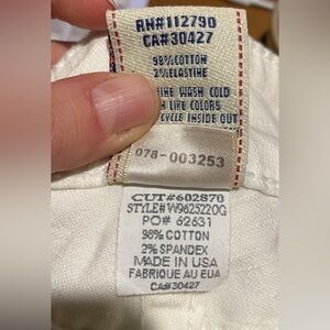 Excellent condition jeans with a few flyaway threads that can easily be trimmed. Buttons and rivets are rhinestones.