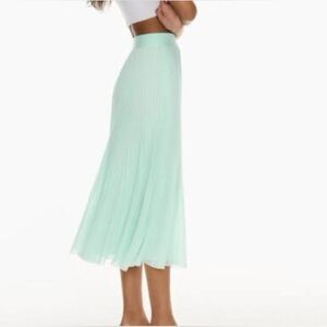 Elevate your style with this elegant mint green pleated maxi skirt. Perfect for any occasion, this skirt offers a flowy silhouette and a fresh, vibrant color.