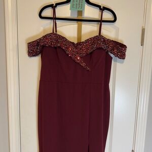 FAERESTY Off Shoulder Beaded Mermaid Gown Burgundy Formal Evening Dress 2XL