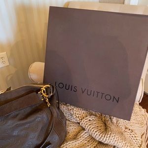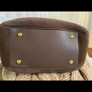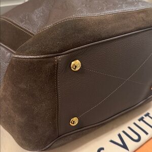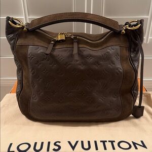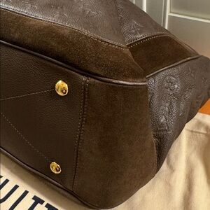 Elegant Louis Vuitton bag. Rich brown leather and Suede. Gold hardware details. Perfect for any occasion.