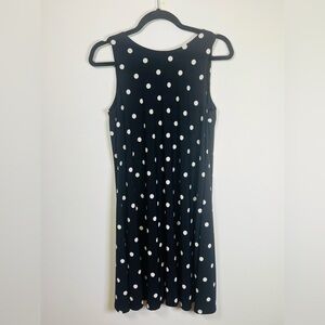 Navy and white polka dot knee length sleeveless dress. Size 4