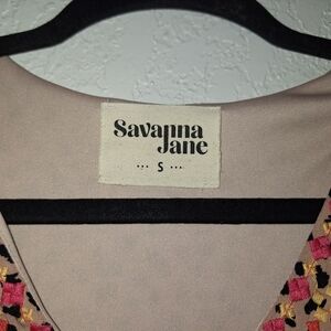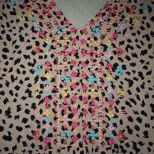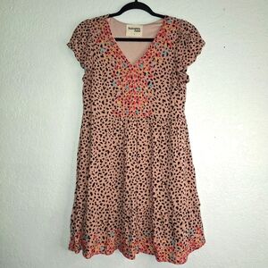 Savanna Jane Cheetah Print V-Neck Dress S Embroidered