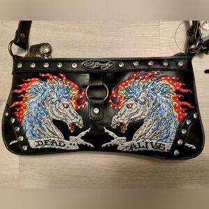 NWT Ed Hardy Studded Shoulder / Crossbody Bag Dead Alive horse rhinestone