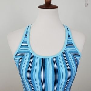 Nike Dri Fit Striped Mesh Back Athletic Crop Tank