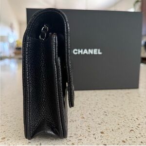 ✨ Authentic CHANEL “Petite Maroquinerie” in black quilted caviar leather with silver-tone hardware.