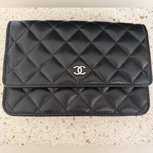 📍 Details: Quilted exterior, silver interlocking CC logo, chain strap, zip compartment + flap section + interior. (See photos).