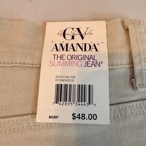 New with tags Gloria Vanderbilt Amanda "The Original Slimming Jean" in a soft Stonewood beige wash. Classic mid-rise fit with stretch for comfort and a clean, flattering straight leg silhouette. Versatile neutral that works year-round.