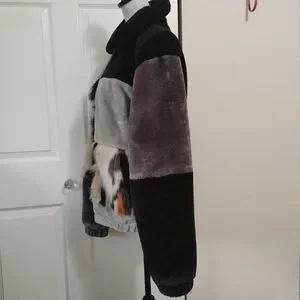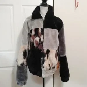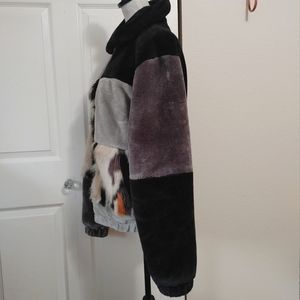 Urban Outfitters Blocked Faux Fur Jacket Bomber Jacket unisex size Small in excellent pre-owned condition
