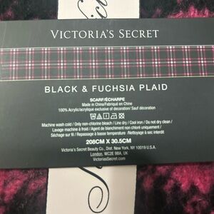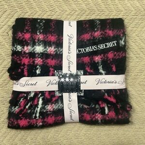 Luxurious scarf with a pink and black pattern. Ideal for warmth and style.