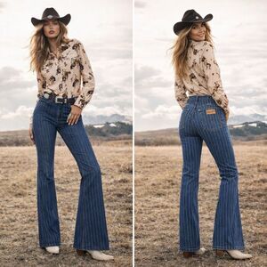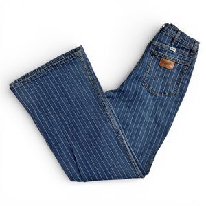 Wrangler Wanderer Pinstripe High Rise Flare Jeans 31x34 Festival Western Rodeo