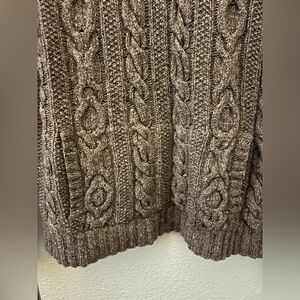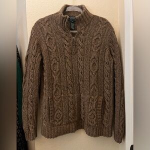 Lauren Ralph Lauren Hand Knit Brown Cable Knit 1/4 zip Sweater size Medium