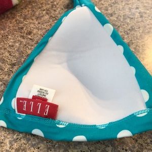 Adorable Elle 2 Piece Bikini Size 8. Polka Dots! I originally bought this for a vacation a very long time ago (so I believe it would be considered Vintage but I could be wrong). I received tons of compliments when I wore this. I loved this suit and wore it a bunch so it is in used condition showing all over wear. This doesn’t fit any more so I want someone to have it that will wear it! Too cute to sit in a drawer! Colors are off in pictures because of lighting. I consider it a combination of blue / green (maybe teal?) with white polka dots. It’s not as vibrant as pictures. One picture is beside a green and blue item. It has been used, shows age and has imperfections but should have some life left in it. Measurements are approximate. Bundle with other items from my closet and only pay 1 shipping fee up to 5 lbs packaged.