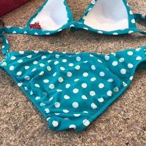 Vintage Elle Bikini 2 piece Swim Size 8 Polka Dot Teal (?) & White