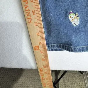 Quacker Factory High Rise Jeans Embroidered Snowmen Womens Size 6