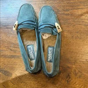 Salvatore Ferragamo Teal Suede Loafers