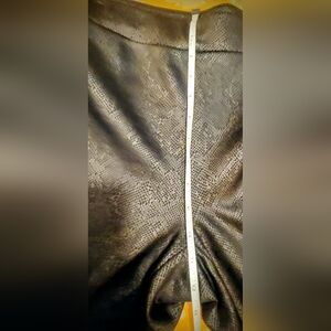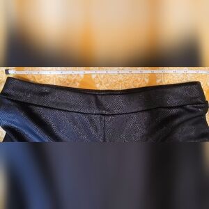 These NYCC Black Textured Leggings in Women’s Size L offer a stylish faux leather look with a snakeskin pattern, perfect for adding a touch of texture to any outfit. These stretch pants feature a high rise waist and are designed for comfort and a flattering fit. Made from faux leather material, these leggings are versatile and can be dressed up or down for any occasion. Perfect for those looking to make a statement with their fashion choices.