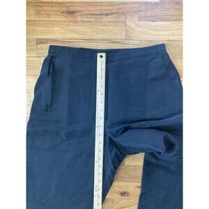 The Eileen Fisher Women's Small Black Silk Dupioni Pants are versatile and stylish dress pants perfect for a variety of occasions. Made from luxurious silk fabric, these pants feature a relaxed fit, a mid-rise waist, and a straight leg length of 30 inches. The black color and solid pattern make them easy to pair with different tops and shoes for both formal and casual looks. With a zip and pull-on closure, these pants are lightweight, breathable, and quick to dry, making them ideal for summer, fall, and spring seasons. Perfect for workwear or business attire, these pants combine comfort and style effortlessly. ** Please note there is a spot where there is either first or fading at the knee as seen in pictures. Will need to be laundered appropriately.