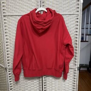 CHAMPION Reverse Weave Spellout Logo Hoodie Large Red 90s Streetwear Vintage