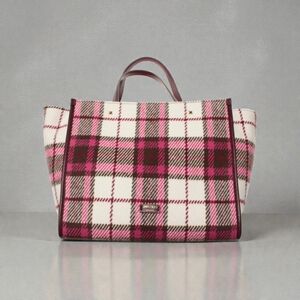 🔥Jimmy Choo Varenne Tote in Burgundy Check Plaid Wool Logo Embroidery