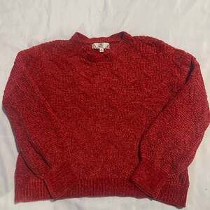 Pink Rose Women's Chenille Knit Sweater, Red/Terracotta, Size Medium. This cozy long-sleeve sweater features a textured cable knit pattern in a soft chenille fabric.