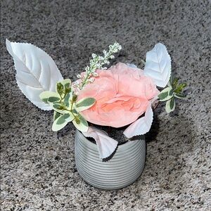 Enhance your home with this elegant pink floral arrangement in a stylish gray vase. Perfect for adding a touch of sophistication to any room.