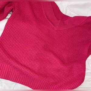 Women’s Oversized Hot Pink V-Neck Off The Shoulder Waffle Knit Sweater XL