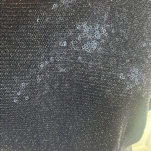 Elegant navy and black striped prom dress. Sleeveless design with a shimmering bodice. Perfect for formal occasions.