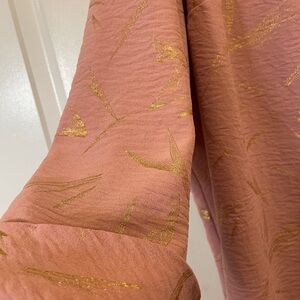 This relaxed-fit blouse features a notched collar and cuffed sleeves, offering a chic and comfortable style. The soft pink color adds a touch of elegance, making it a versatile addition to any wardrobe. With its flowing silhouette, this blouse is perfect for both casual and formal occasions.