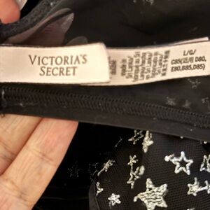 Black and silver Victoria's Secret star-studded mesh bralette size large