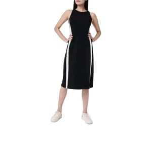 Sleek and flattering SPANX AirEssentials sleeveless maxi dress in classic black. Designed with SPANX's signature smoothing stretch fabric, this dress offers a streamlined silhouette with comfortable compression and ease of movement. Features a crew neckline, sleeveless cut, and subtle side slit for walkable comfort and a modern look.