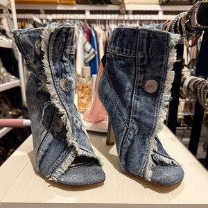 Azalea Wang Denim Open Toe Booties- Size 7