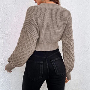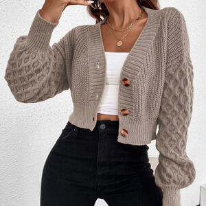 Khaki Casual Women's Cable Knit Drop Shoulder Cardigan