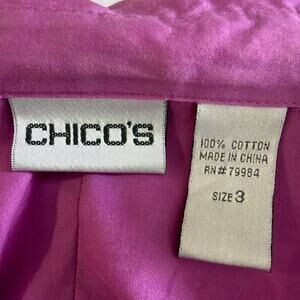 Chico's long sleeve cotton shirt hot pink tucks on front chico's size 3